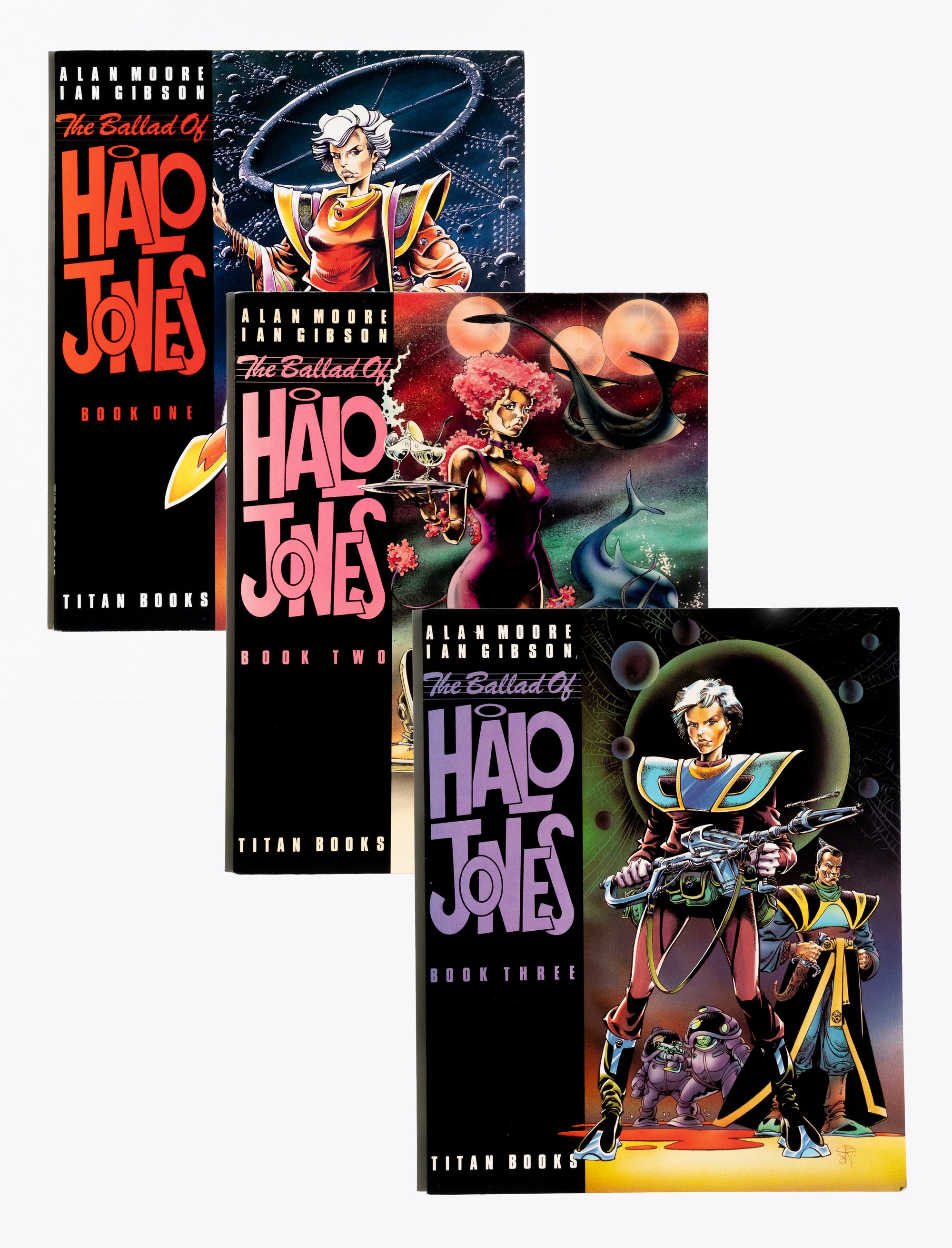Titan Books editions from the 1980s. Some edgewear, still my favorite presentation of the work. Bonus store newsletter with Halo Jones on the cover.