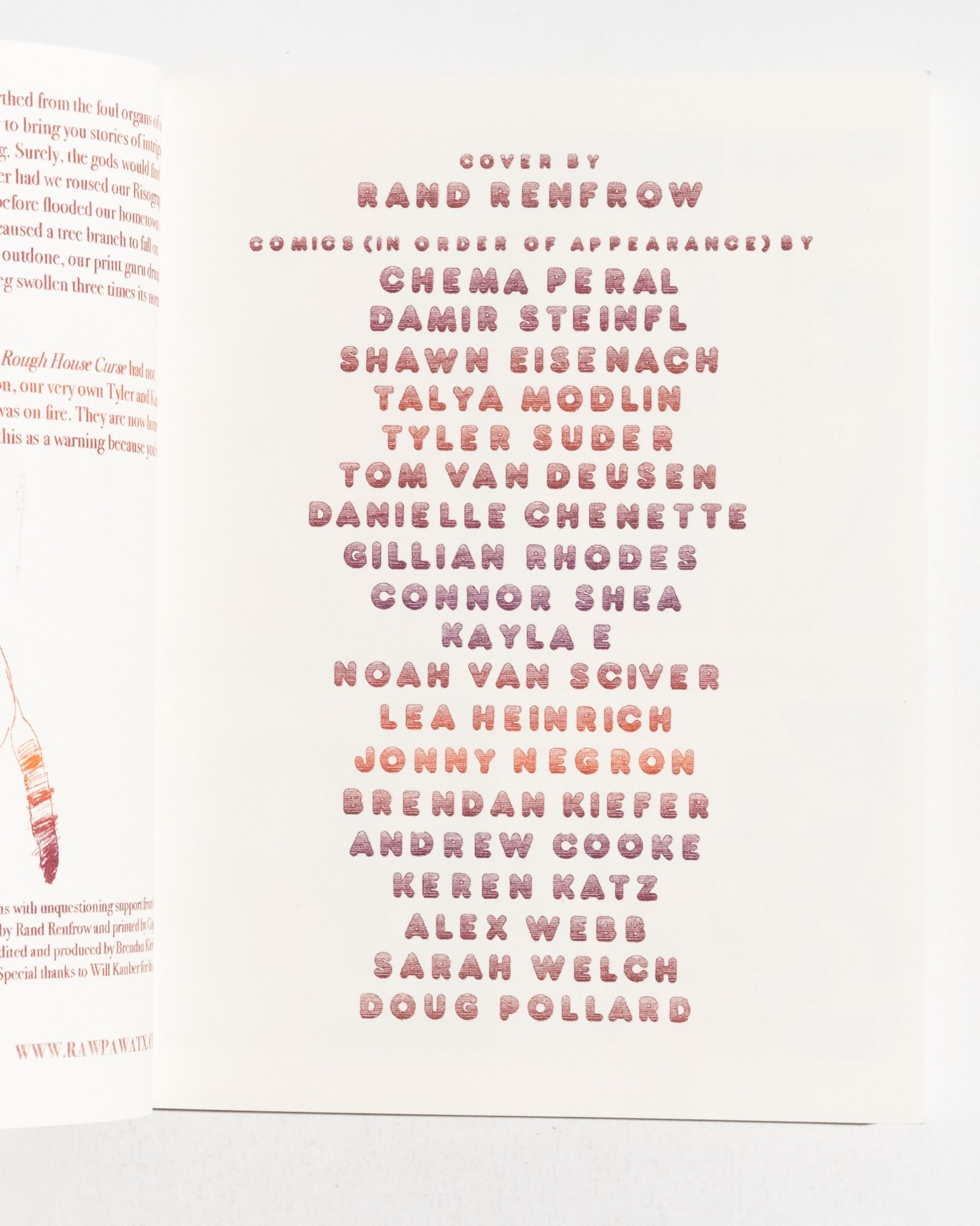 Very cool risograph anthology out of Austin, Texas. The big names in this one are a two page Noah Van Sciver comic and a pretty lengthy Jonny Negron piece. However, A LOT of the work in here is worth checking out. In other words, the perfect anthology.